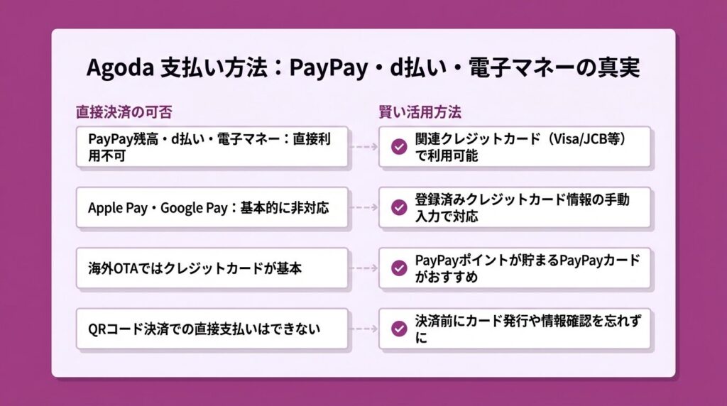 Agoda(アゴダ)の支払い方法|PayPay・d払い・電子マネーは使える?