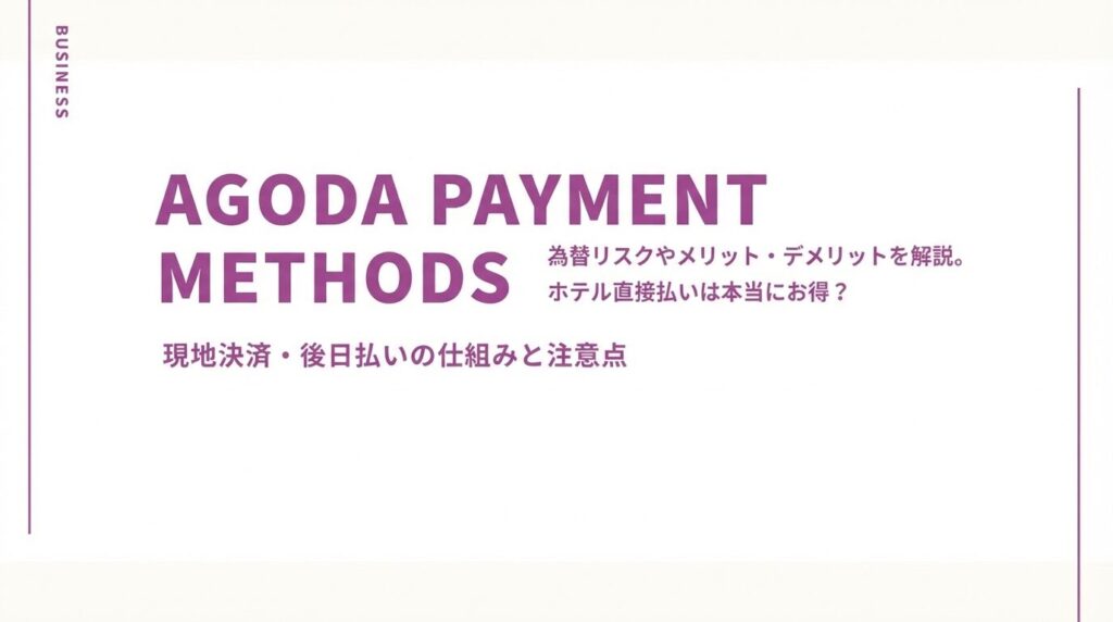 私は旅行メディアを8年運営してきましたが、Agodaの支払い方法は選び方を間違えると為替手数料で損したり、エラーで予約できなかったりすることもあります。
