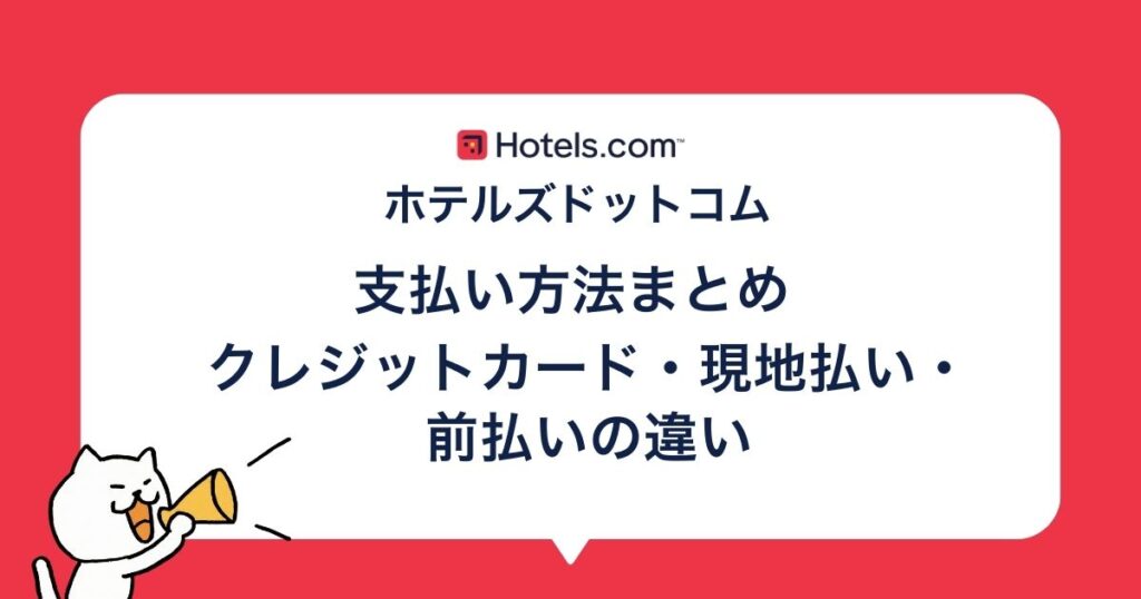 ホテルズドットコムの支払い方法まとめ【クレジットカード・現地払い・前払いの違い】