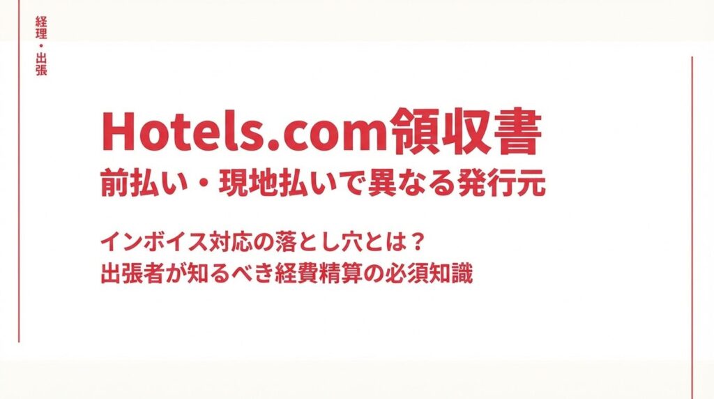 ただし、重要な注意点が1つ。Hotels.com L.P.は適格請求書発行事業者に登録されていないため、事前決済の領収書はインボイス制度(適格請求書)に対応していません。