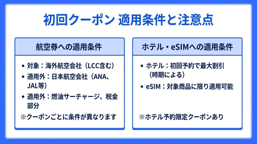 初回クーポンを航空券に使う場合、以下の条件があります。