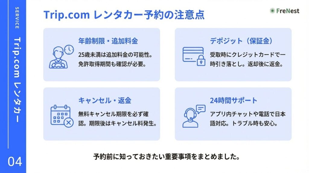 - レンタカー会社によってサービス品質に差がある…Trip.comはあくまで仲介プラットフォーム