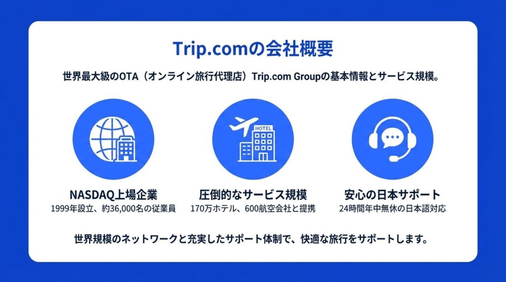 Trip.comの評判を正しく判断するために、まず運営会社の基本情報を押さえておきましょう。