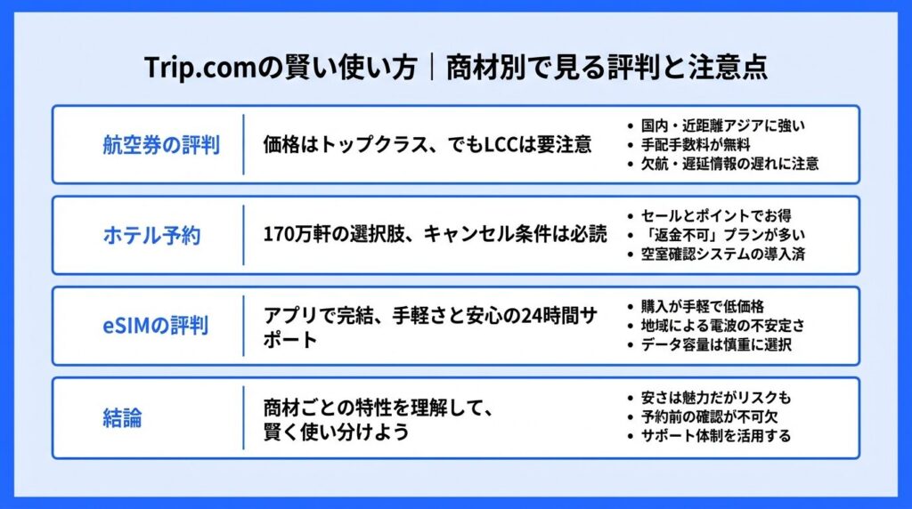 【商材別】Trip.comの評判を比較|航空券・ホテル・eSIM
