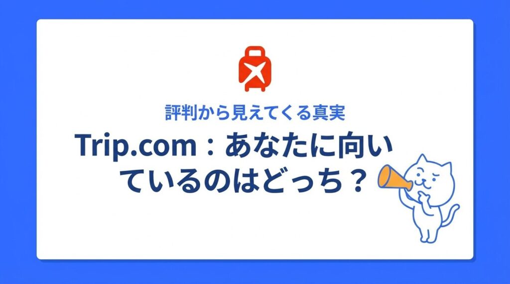 ネットで評判を調べると「やばい」「怪しい」という声も見かけるので、心配になりますよね。この記事では、Trip.comの評判・口コミをコロナ前と最近の時系列で分析し、航空券・ホテル・eSIMの商材別に整理しました。結論から言うと、Trip.comはNASDAQ上場の世界最大級OTAで、ポイントを押さえれば安心して使えるサービスです。